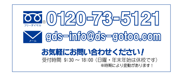 まず、お電話また各サービスセンタ・本校にて予約が必要です。《TEL:0120-73-5121》 |